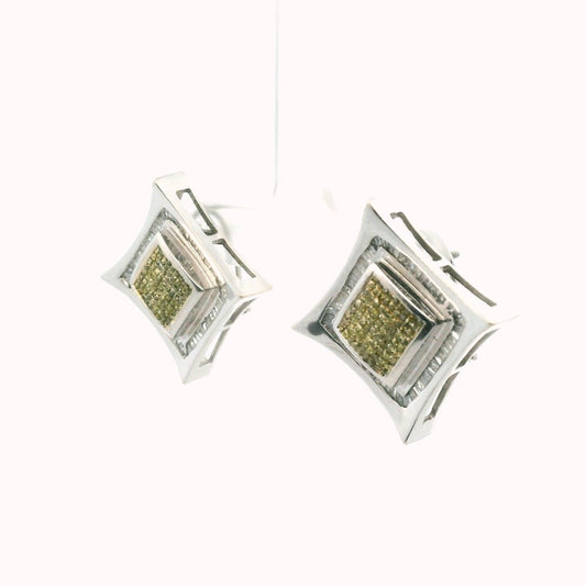 14K White Gold Yellowish Green & White Diamond Earrings