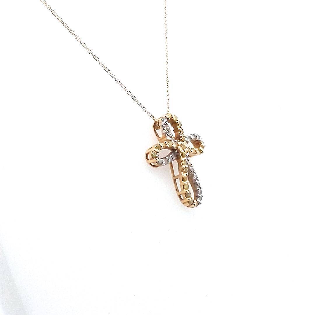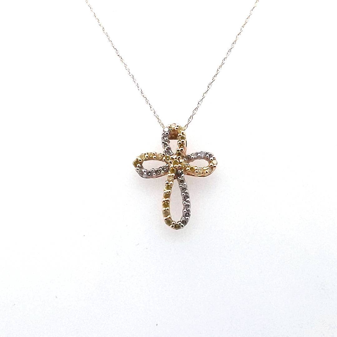 14K 2-Tone Gold White & Irradiated Yellow Diamond Infinity Cross Necklace