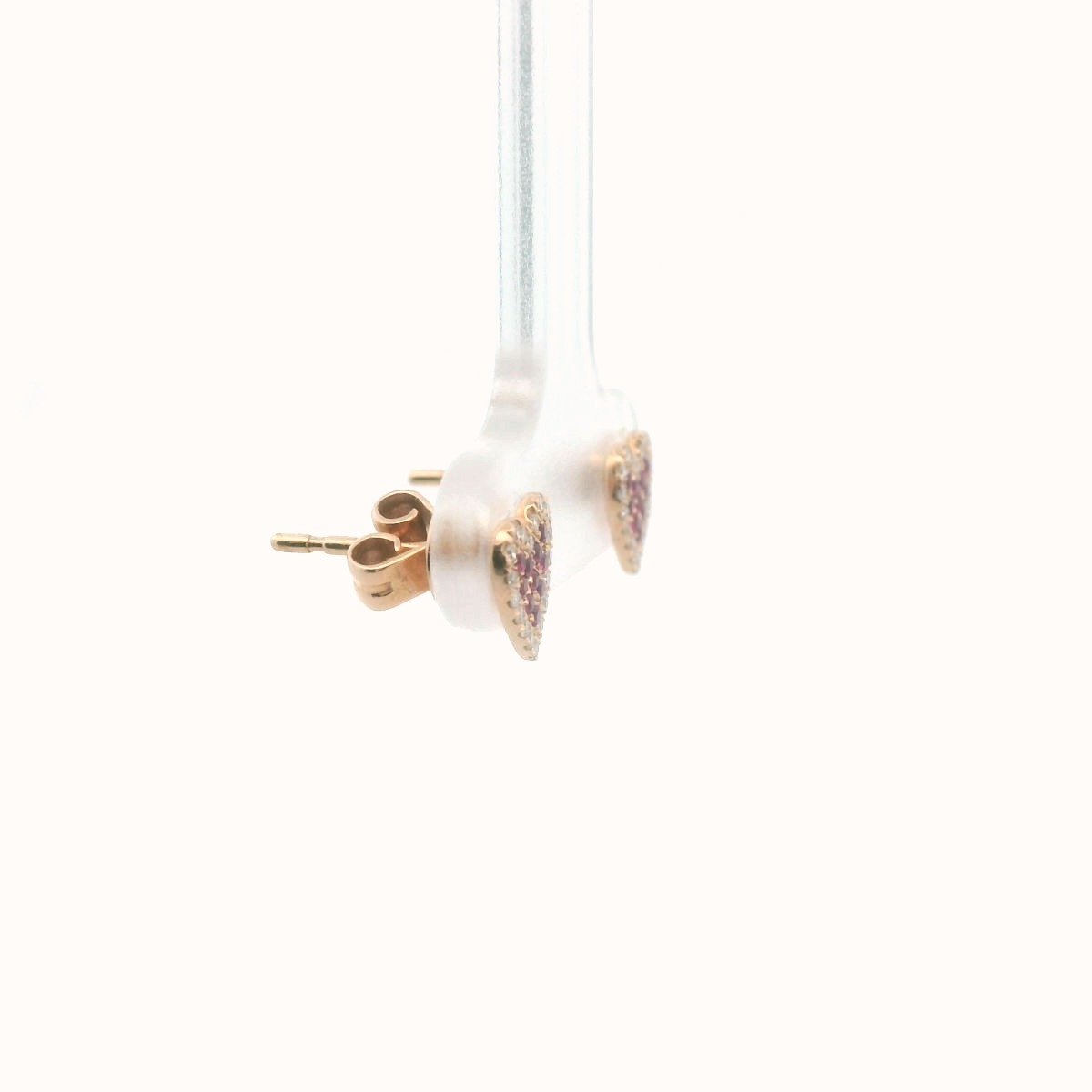 14K Rose Gold Pave Set Diamond & Ruby Heart Earrings