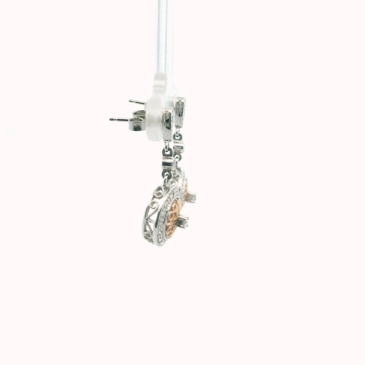 14K Two Tone Gold Diamond Circle Drop Milgrain Earrings