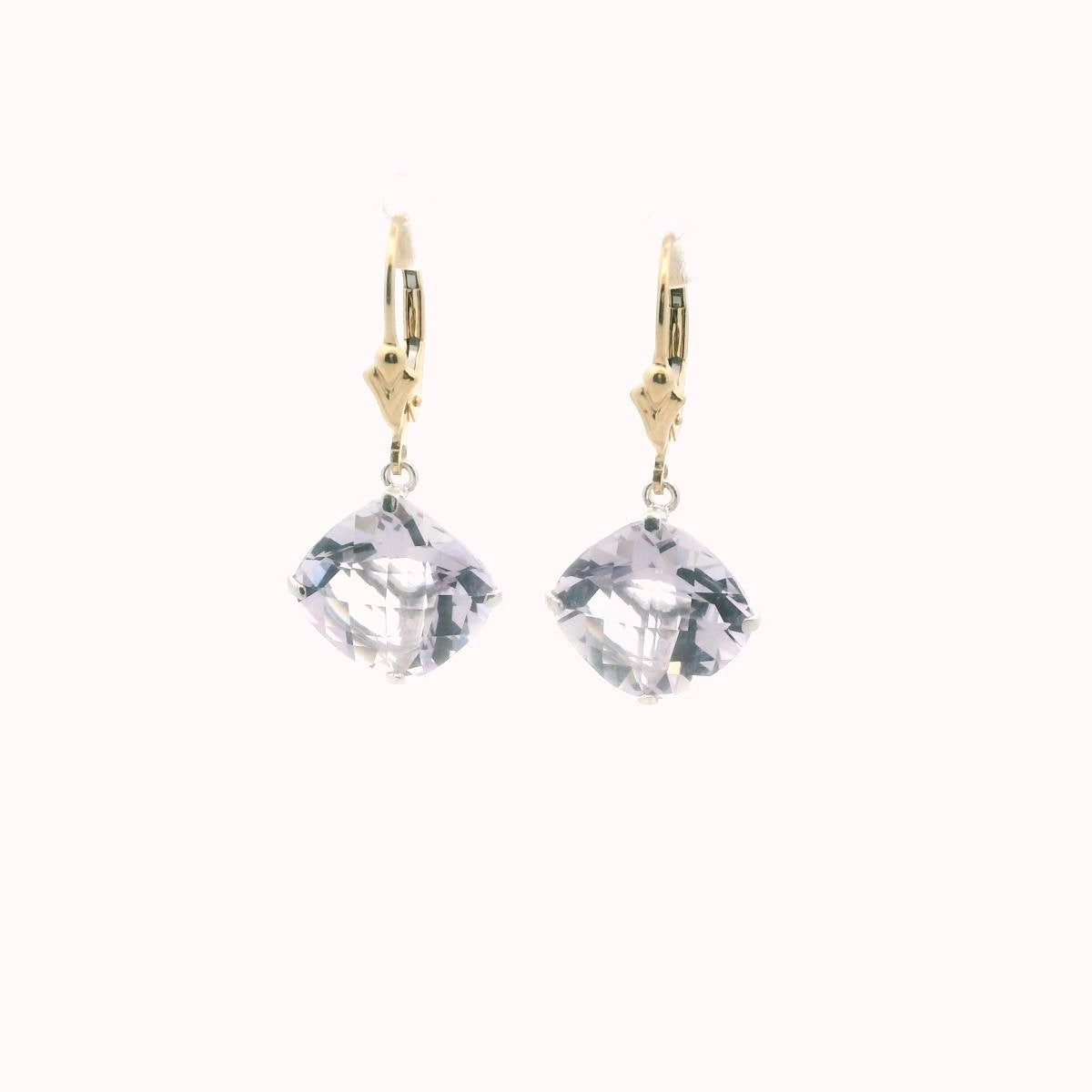 14K Two Tone Gold Rose Quartz Dangle Earrings