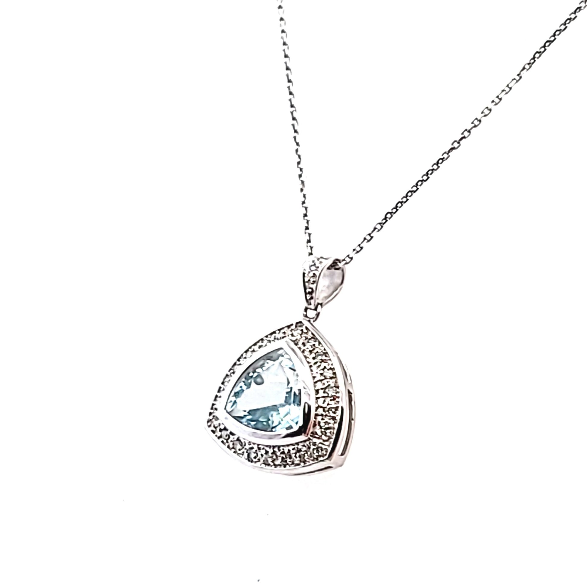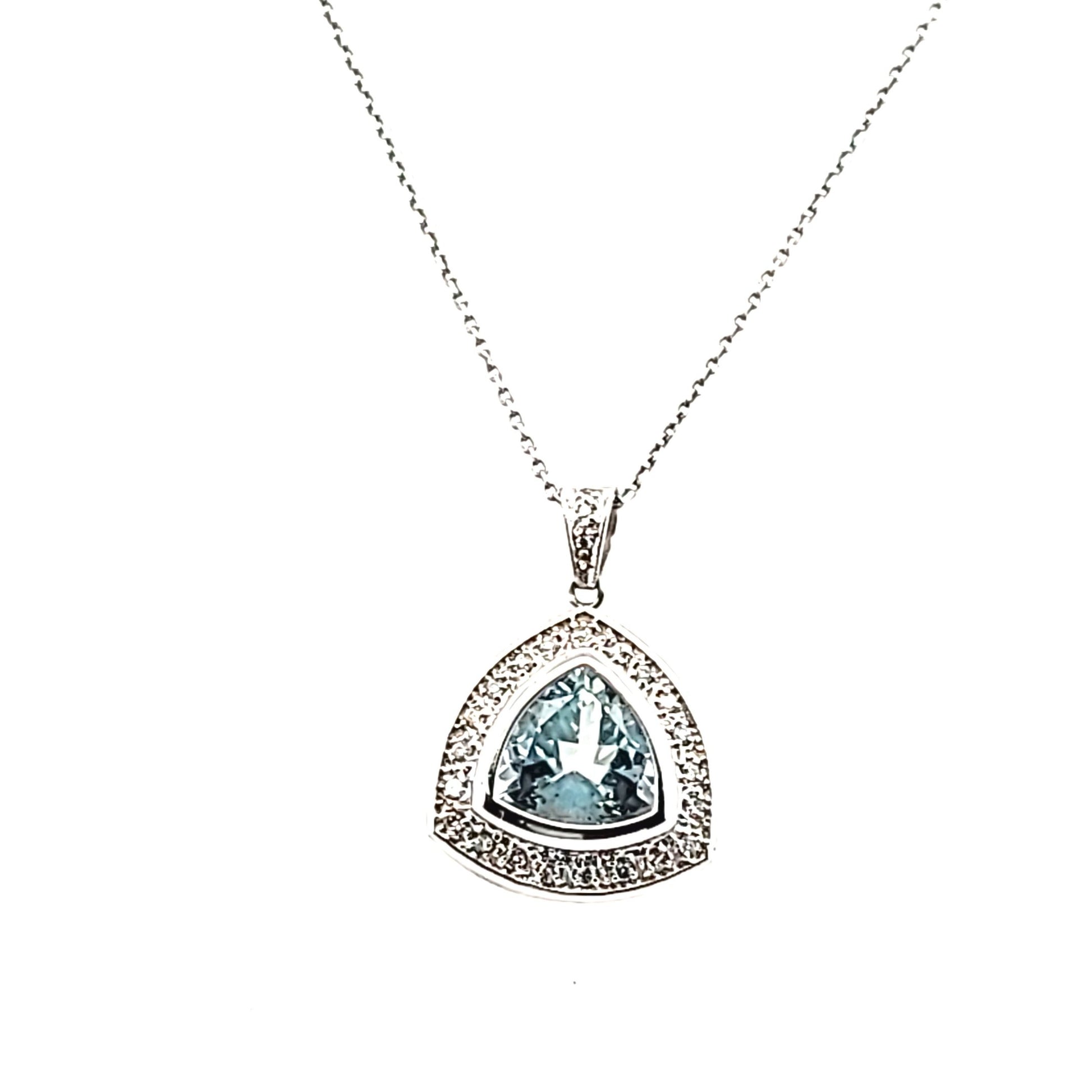 14K White Gold Diamond & Trillion Cut Aquamarine Necklace
