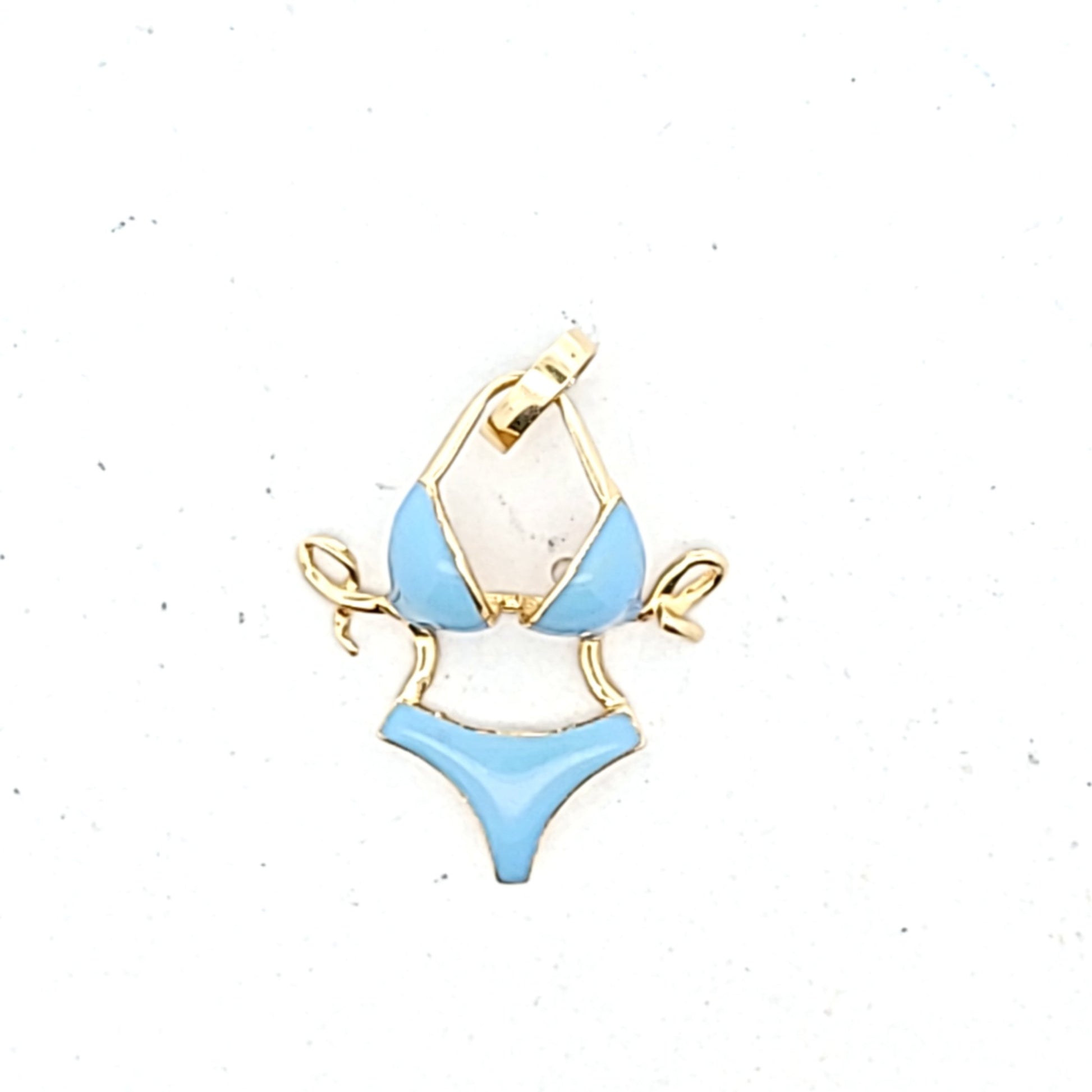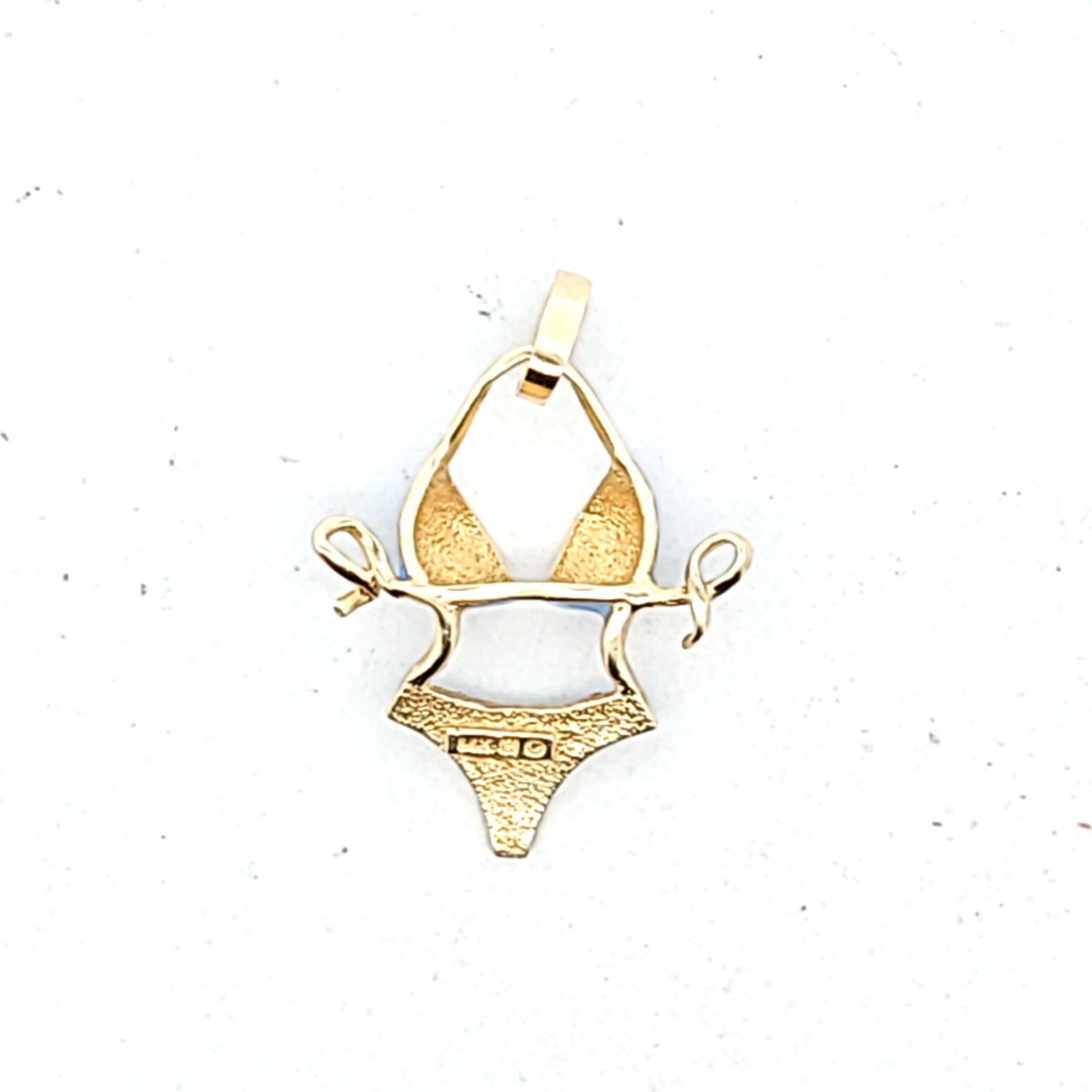 14K Yellow Gold Blue Enamel Bikini Swim Suit Pendant