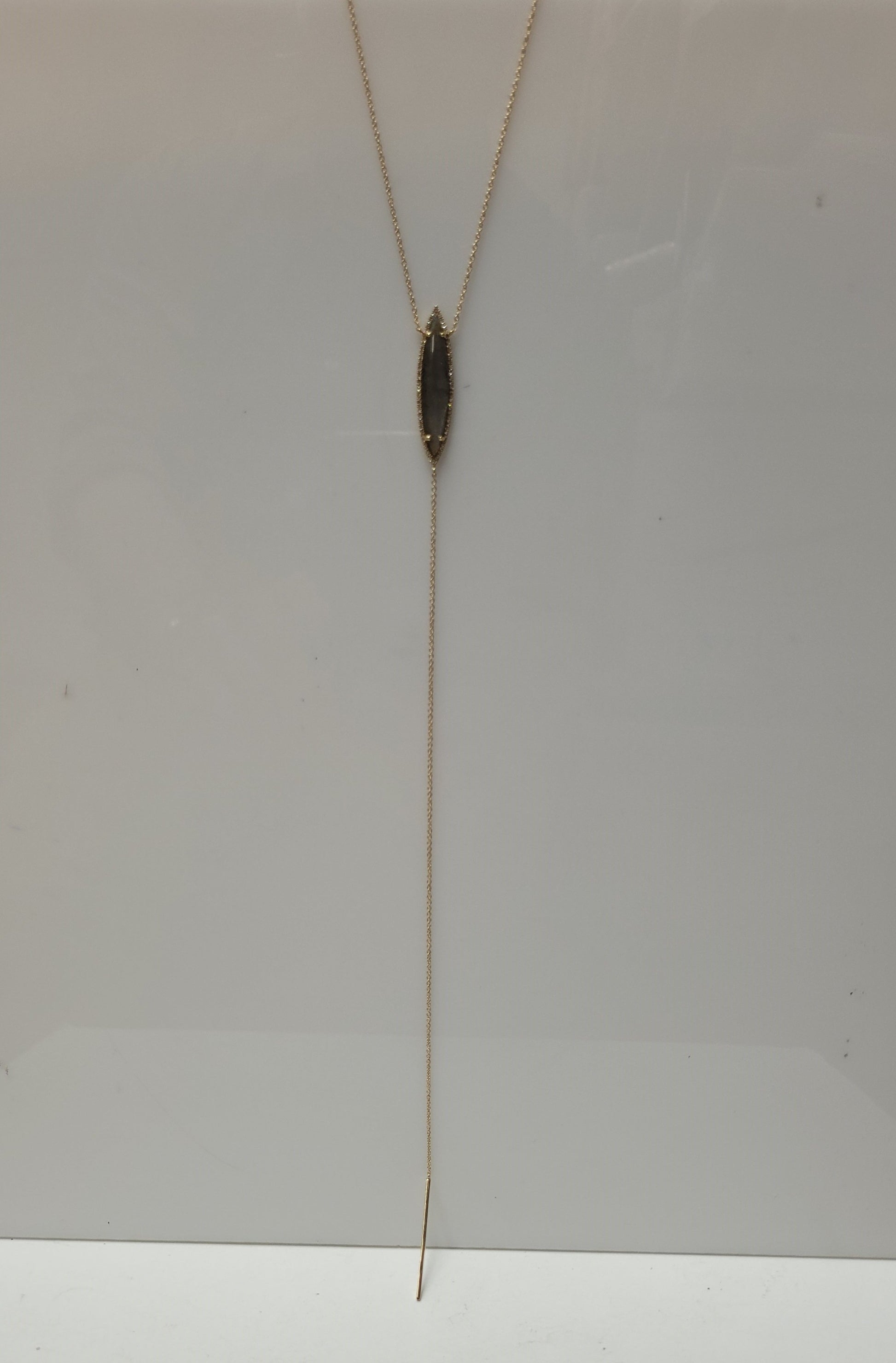 14K Yellow Gold Diamond & Labradorite Drop Bar Necklace