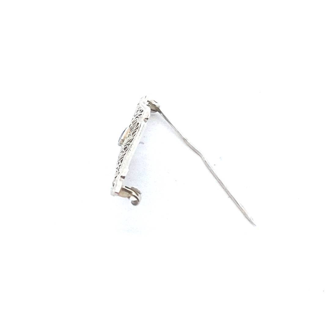 Antique 14K White Gold Edwardian Lab Created Sapphire Filigree Brooch