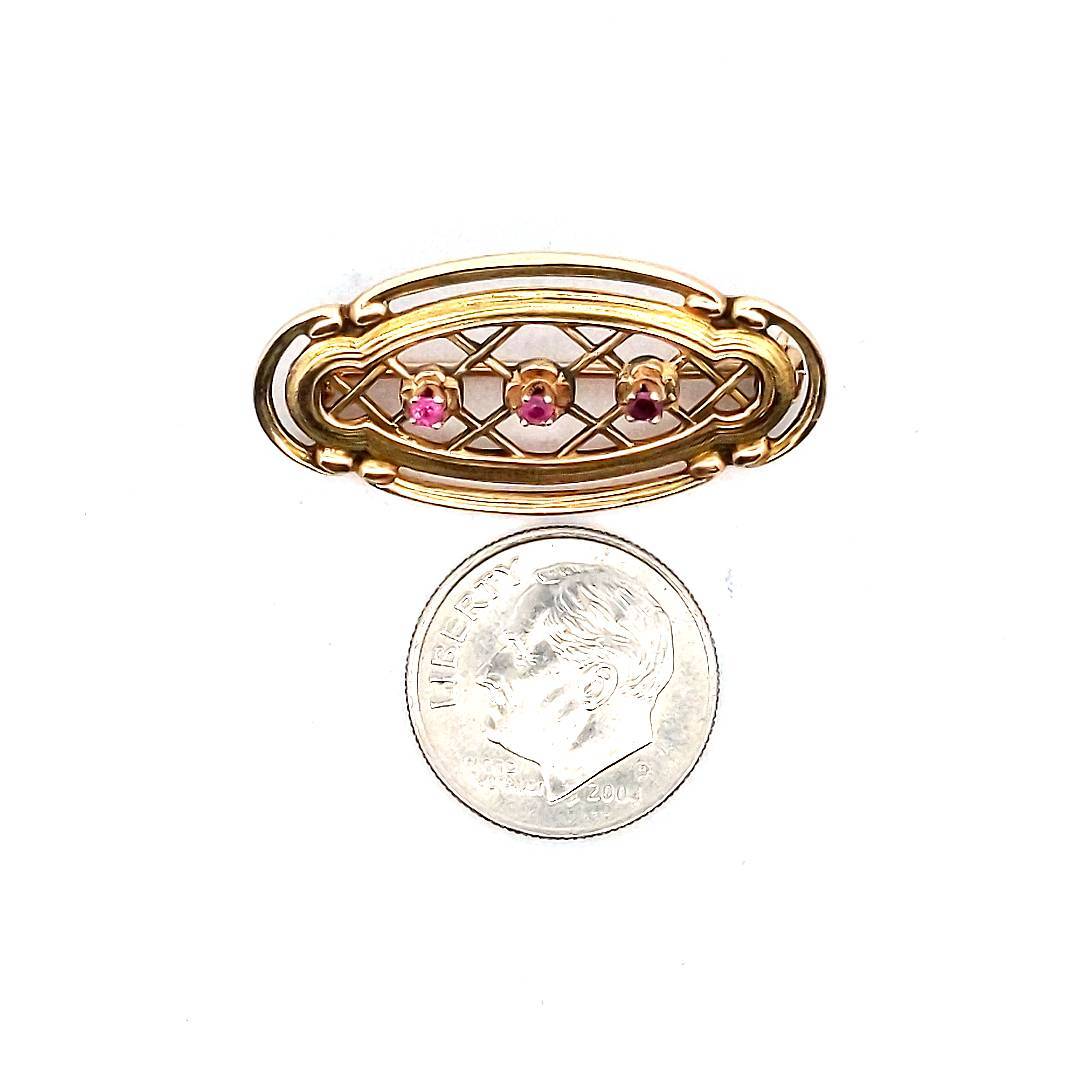 Antique 14K Yellow Gold Edwardian Ruby Lattice Brooch