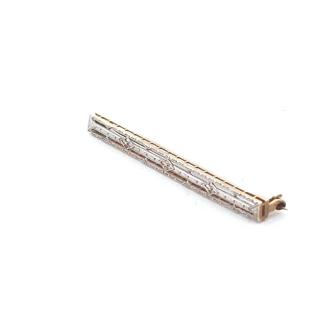 Antique 14K Yellow Gold Platinum Top Edwardian Filigree Bar Brooch