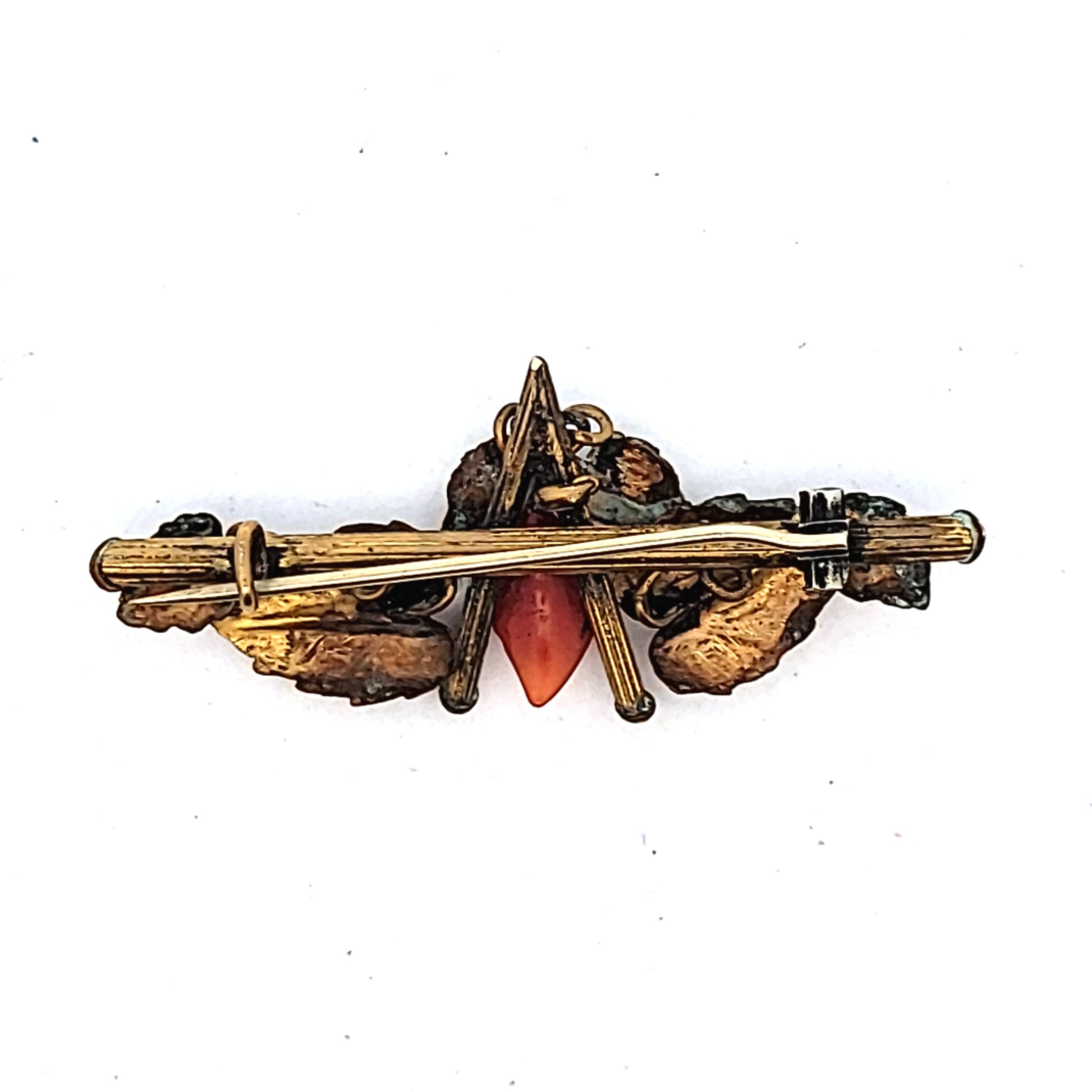 Antique Two Tone Gold Filled Coral Flower Vine Brooch