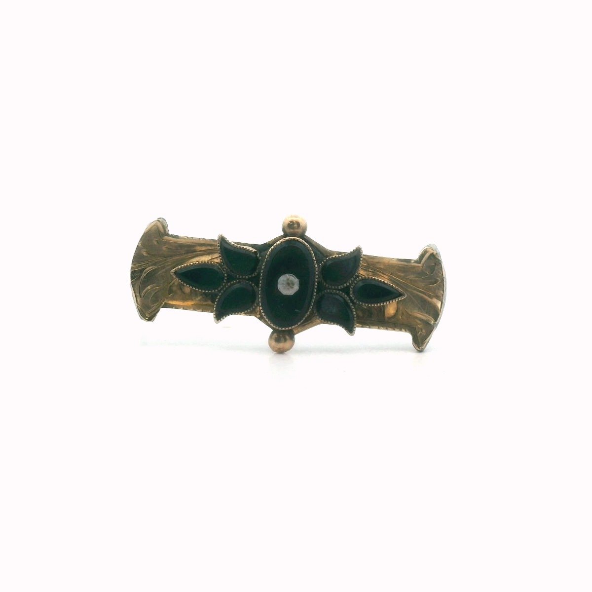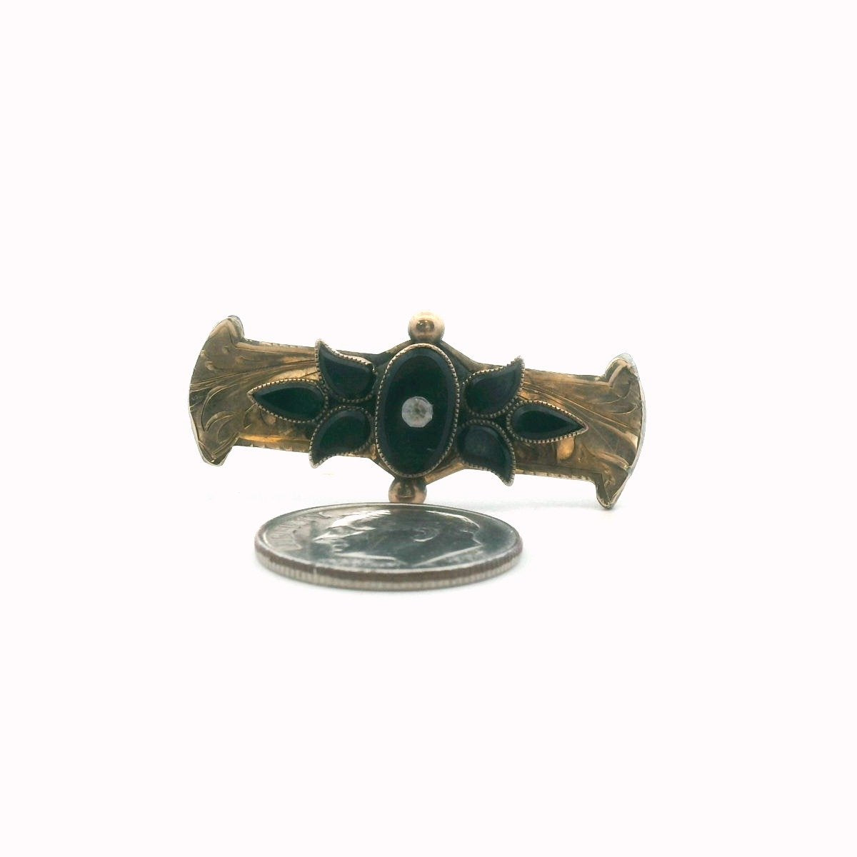 Antique Victorian Gold Filled Onyx & Paste Stone Engraved Brooch