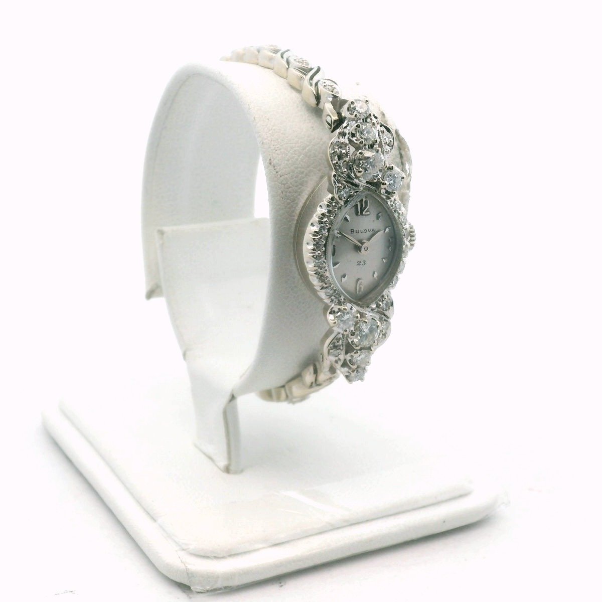 Bulova 14K White Gold Diamond Manual Wind Ladies Watch