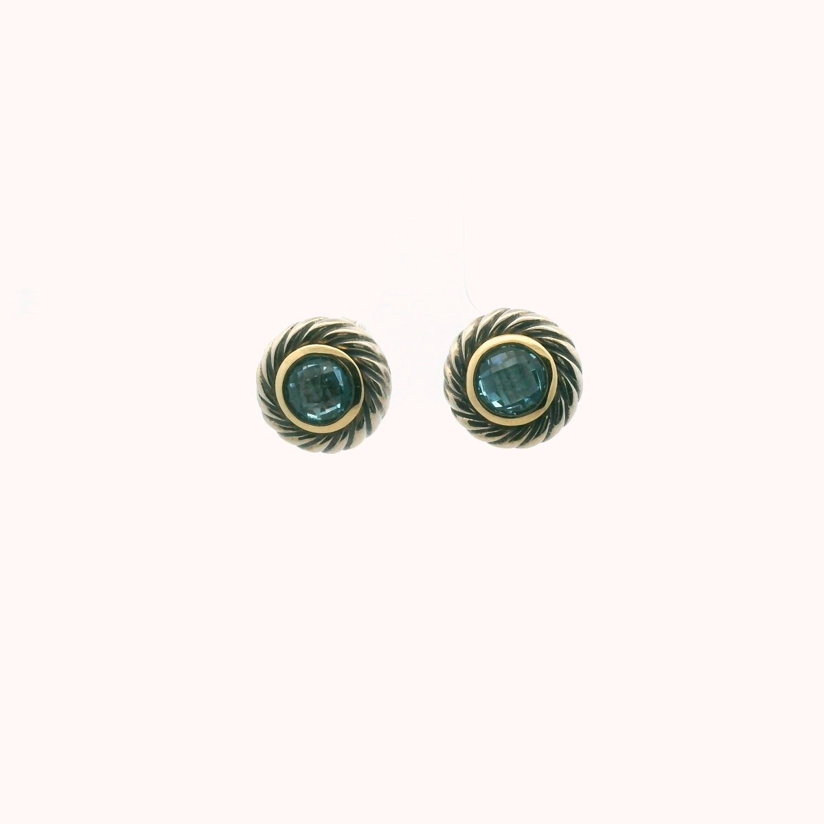 David Yurman Sterling Silver & 18K Gold Blue Topaz Earrings