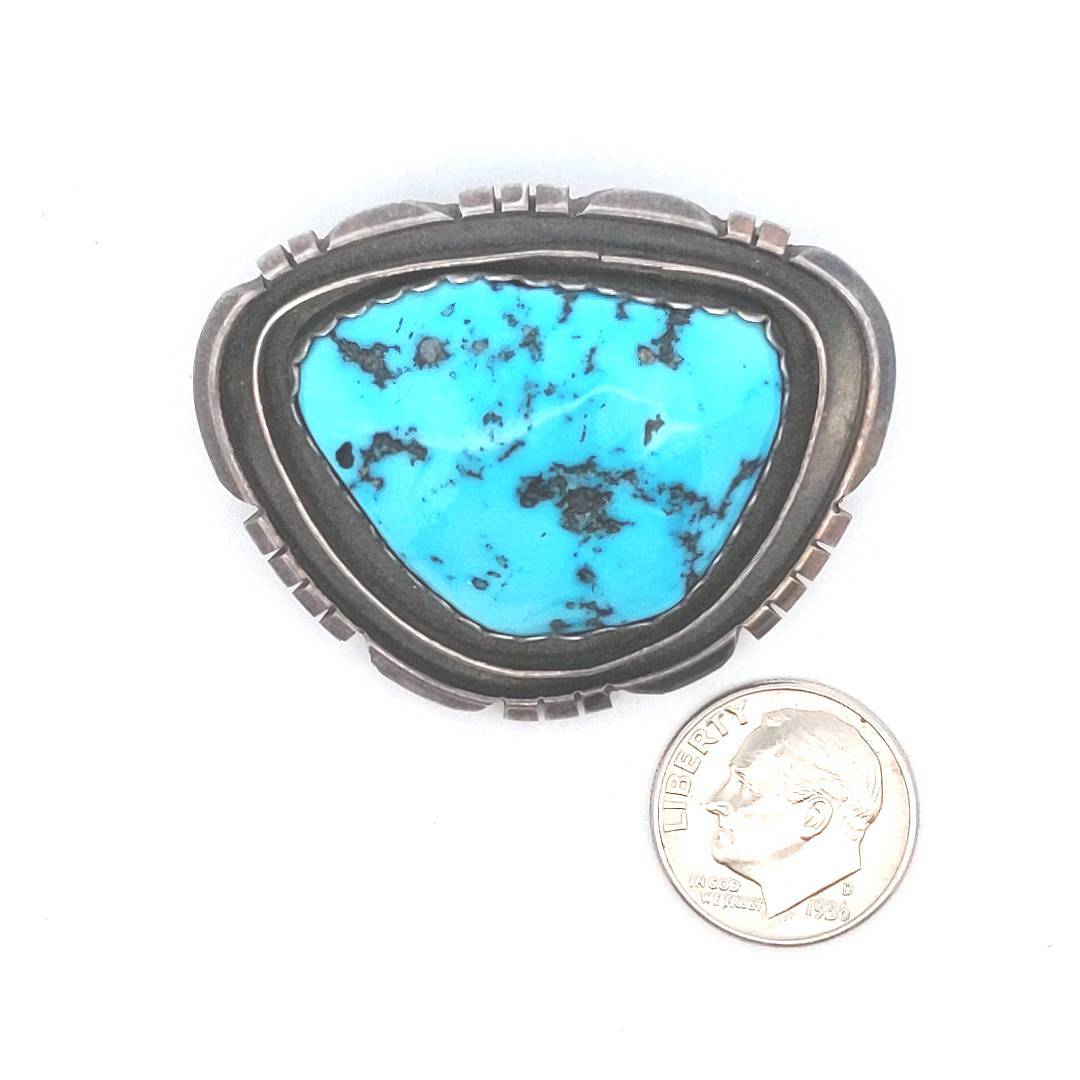 Designer T.Rillie Sterling Silver Sleeping Beauty Turquoise Native American Brooch