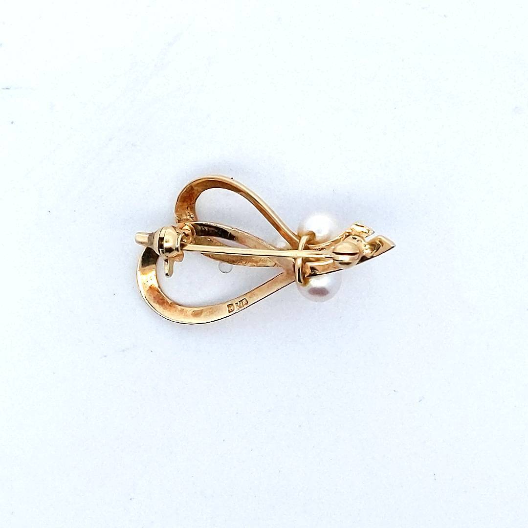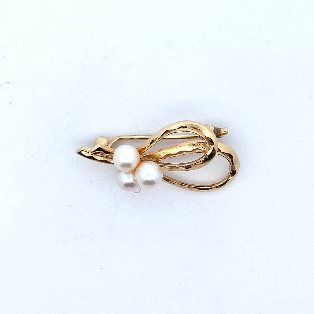 Designer Mikimoto 14K Yellow Gold Cultured Pearl Brooch