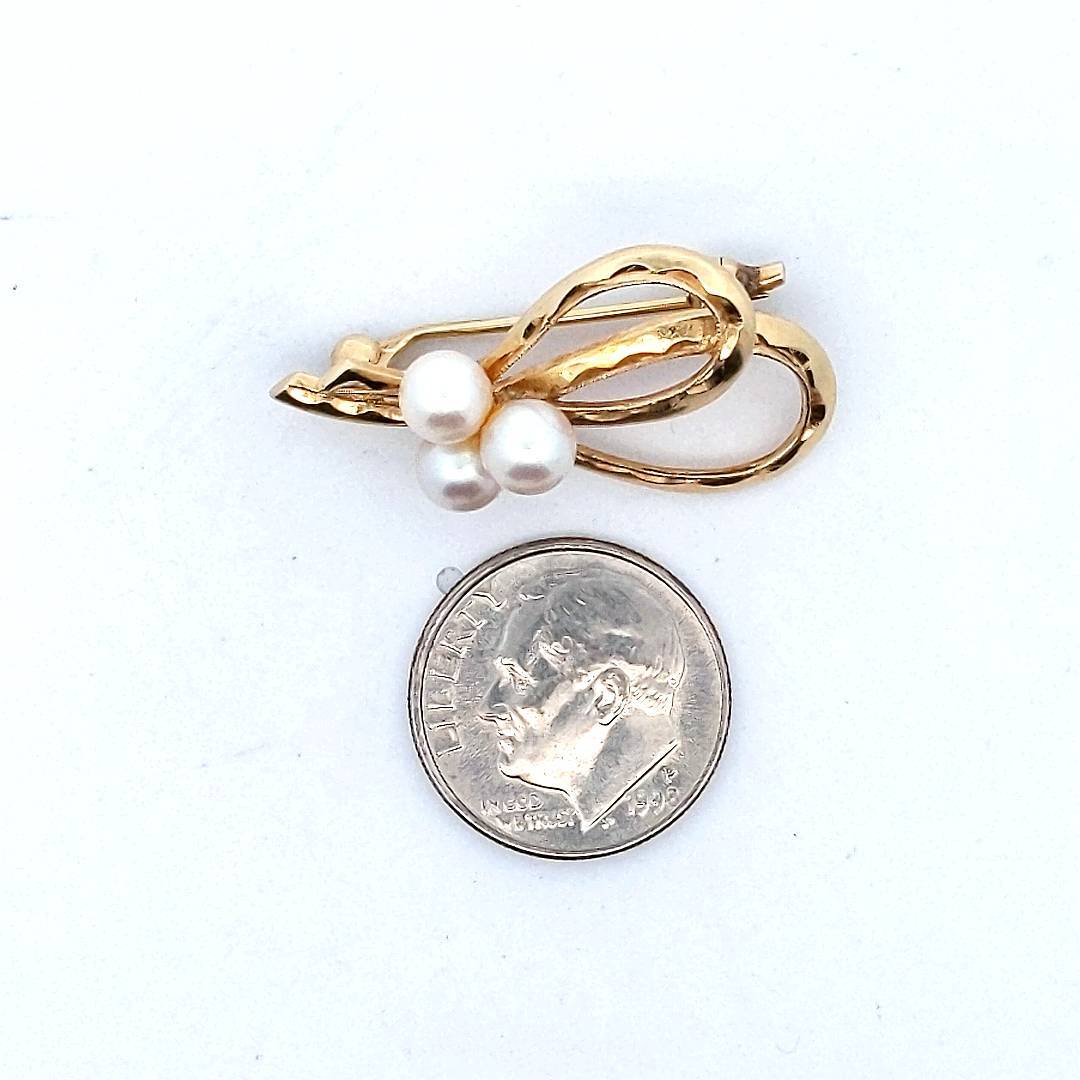 Designer $800 Mikimoto 14K Yellow Gold Cultured Pearl Brooch