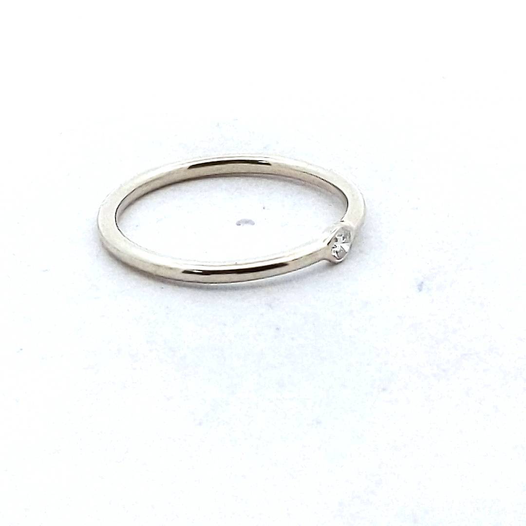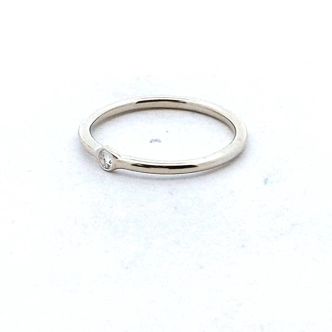 Ring contains 1 bezel set 0.06 carat round brilliant cut natural diamond