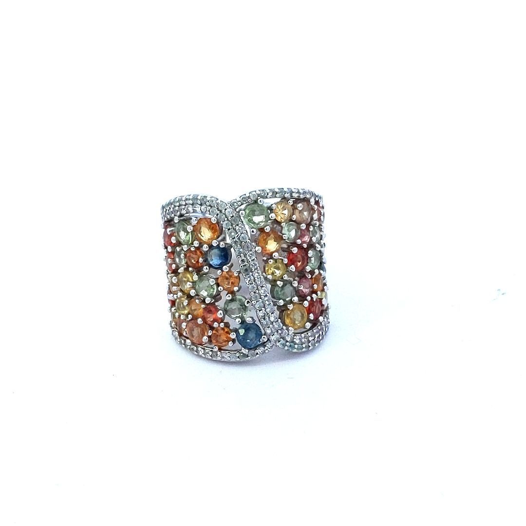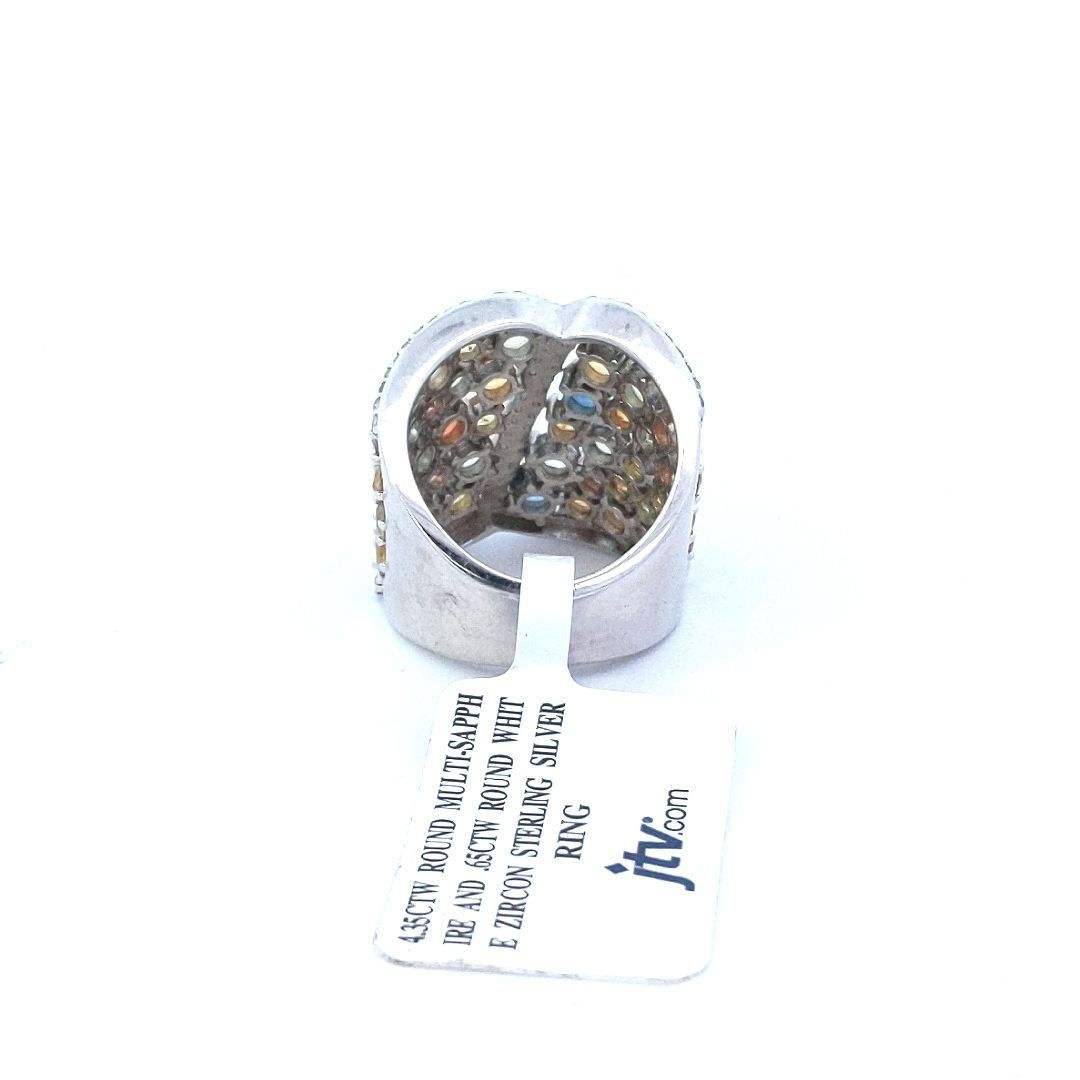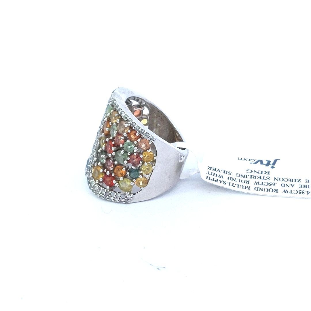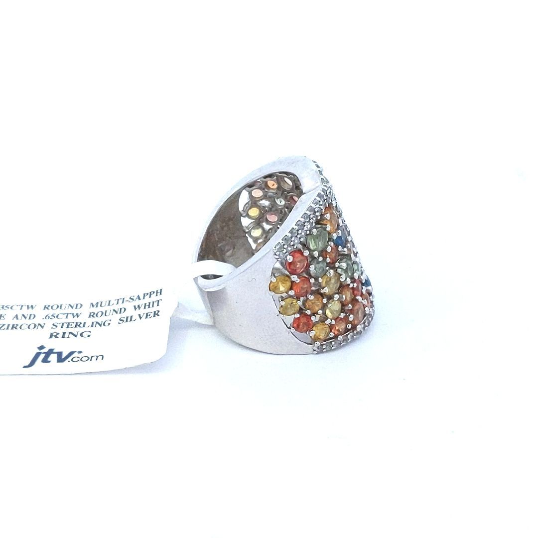 Estate $300 Sterling Silver Multi Color Sapphire White Zircon Ring