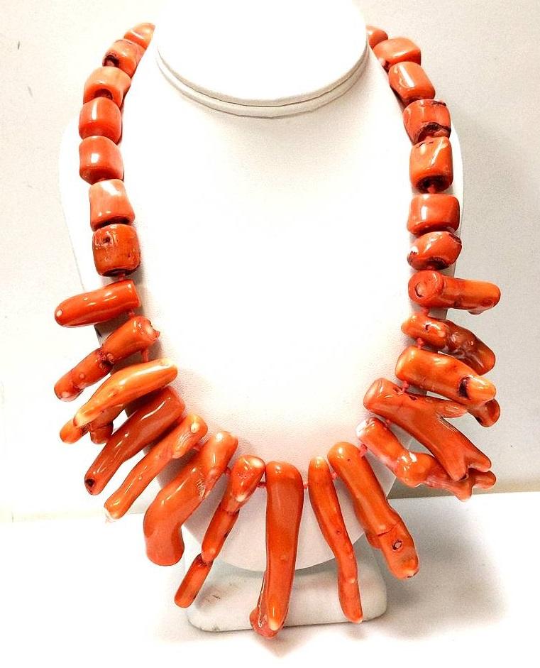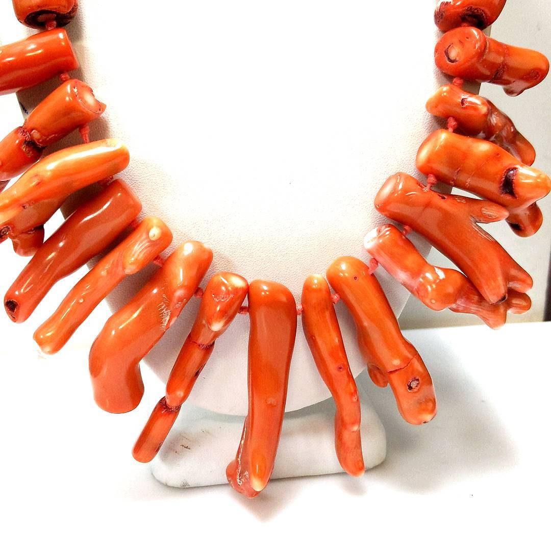 Necklace contains natural coral gemstones