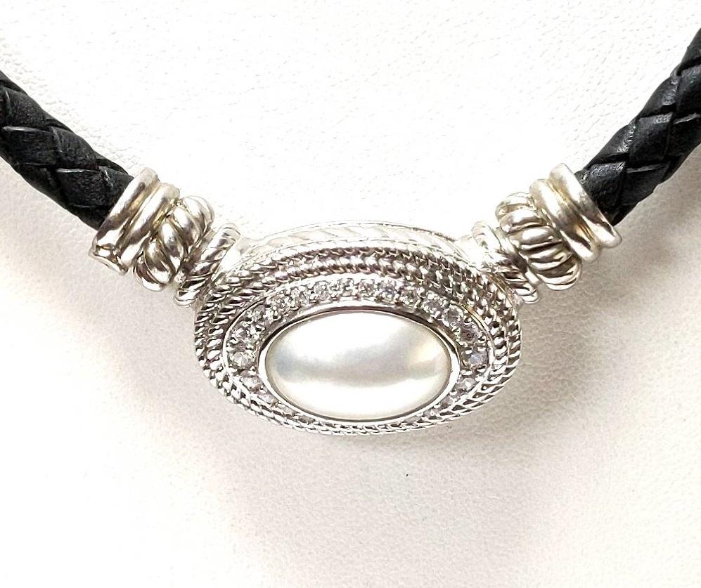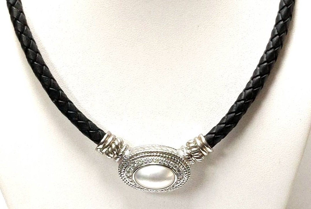 Judith Ripka Sterling Silver & CZ Heart Slide With Leather Choker Magnetic Clasp
