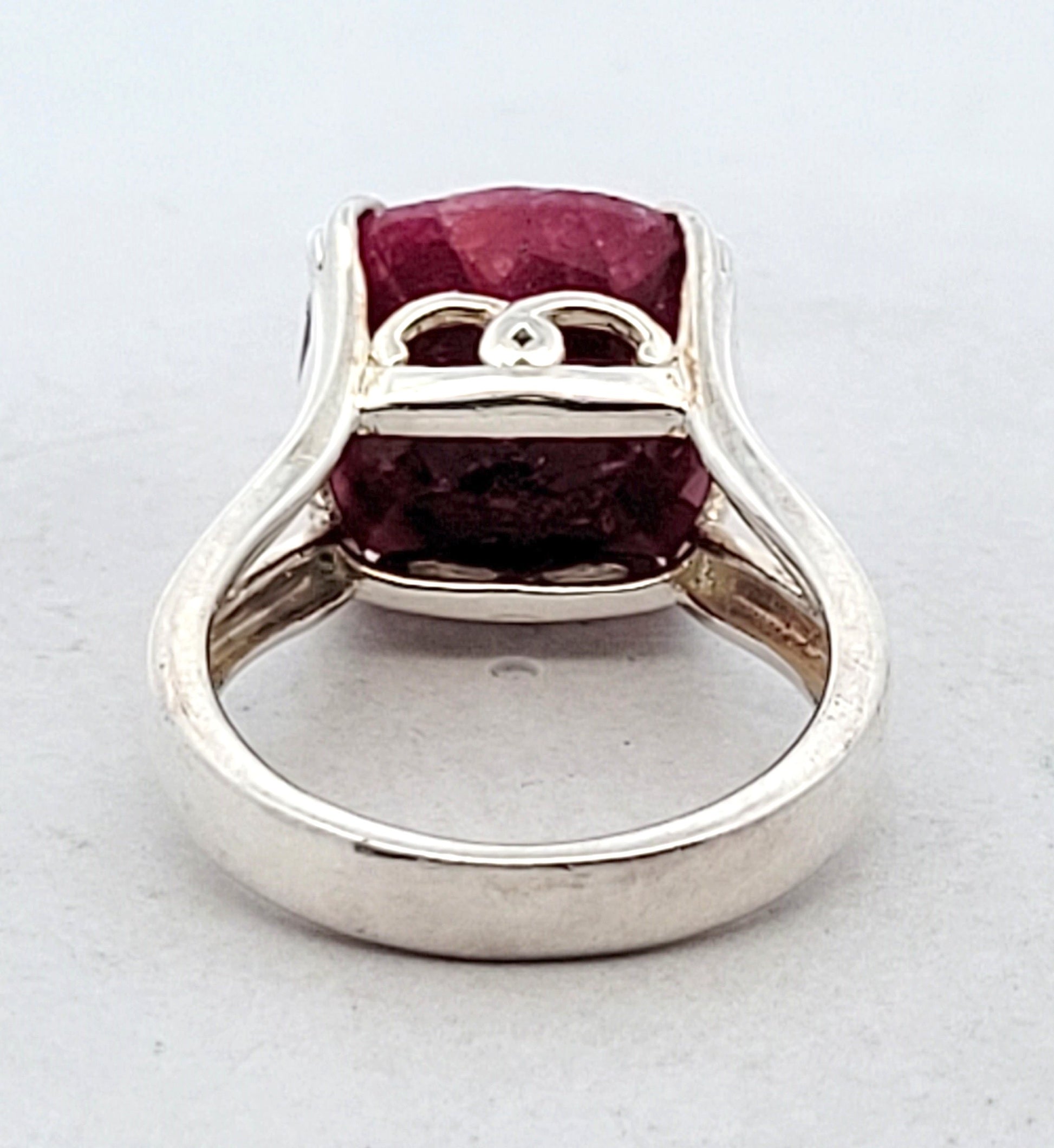 Ring contains 1 checkerboard cut natural ruby gemstone