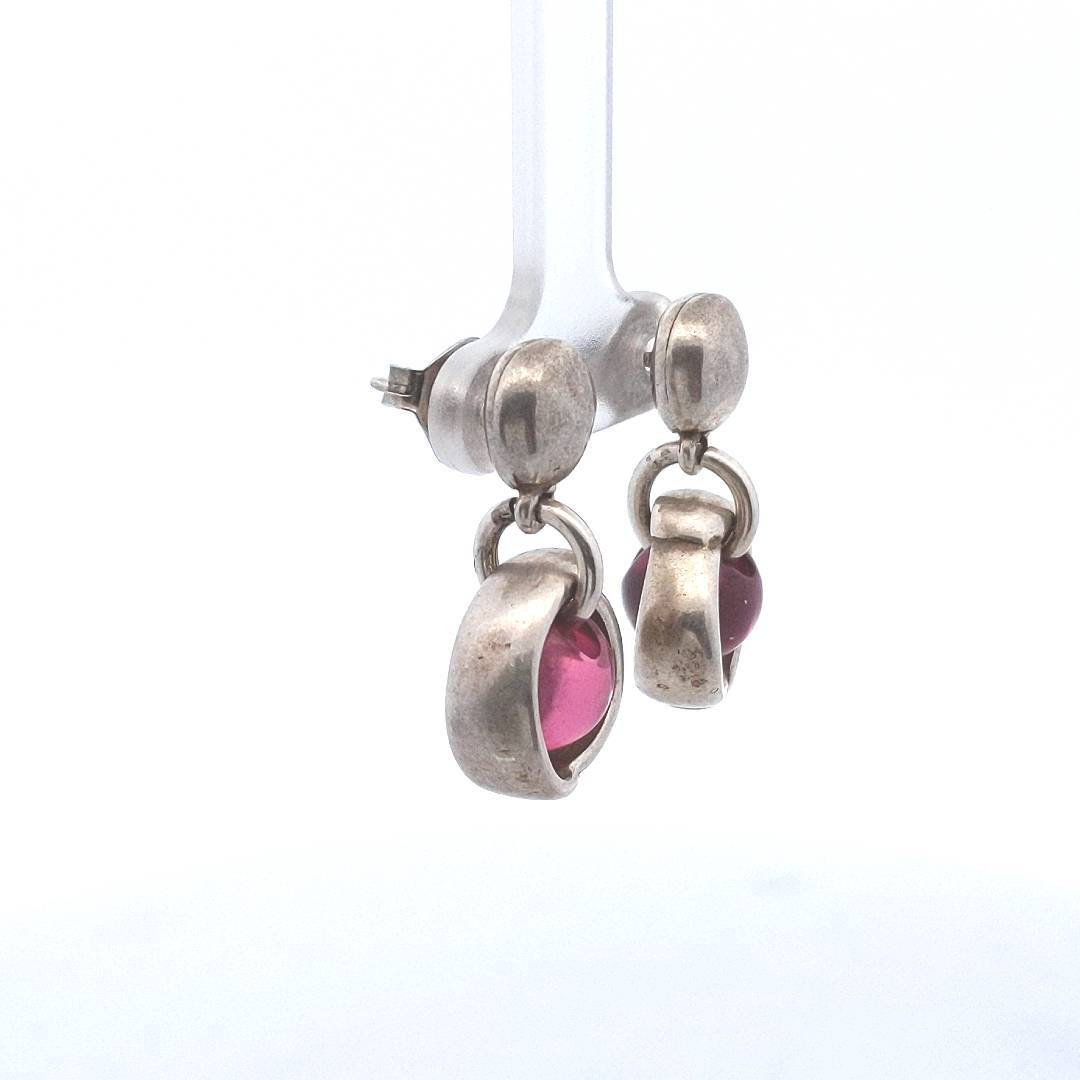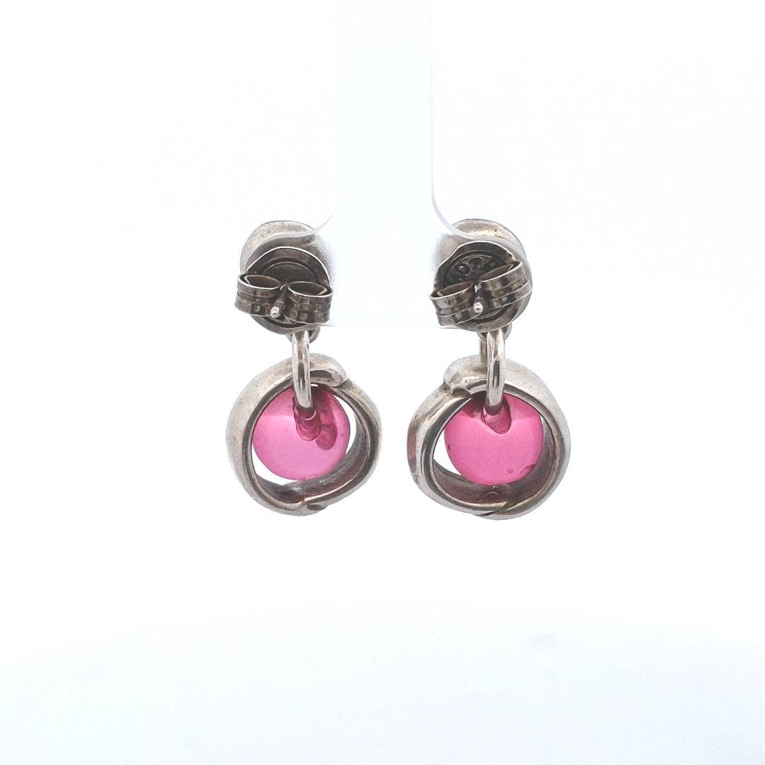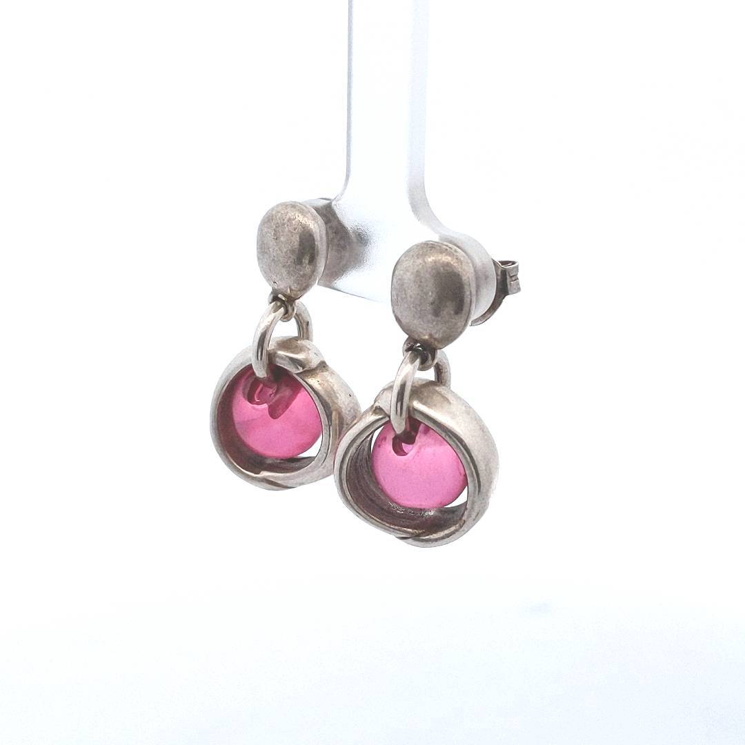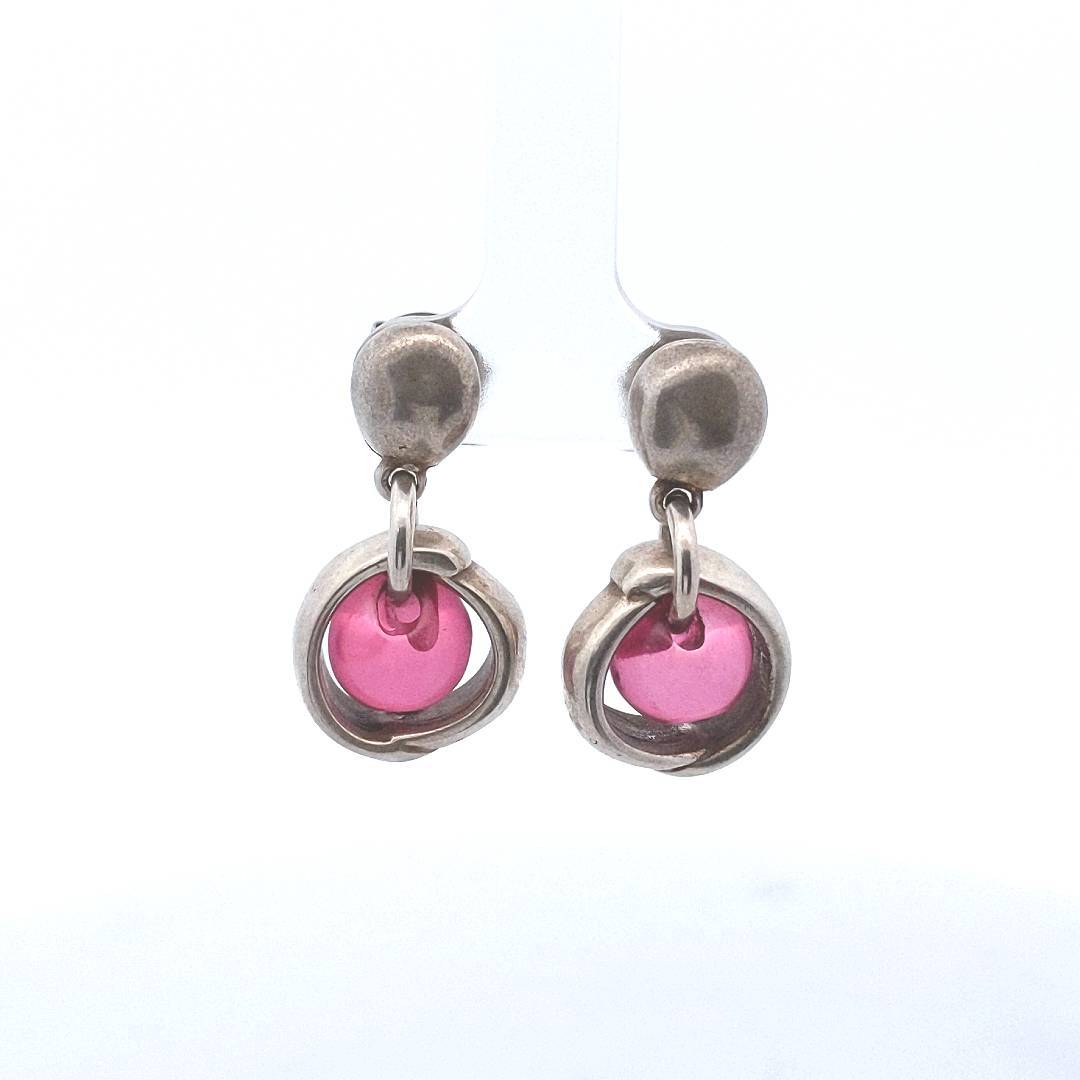 Uno de 50 Sterling Silver Pink Bead Circle Dangle Earrings