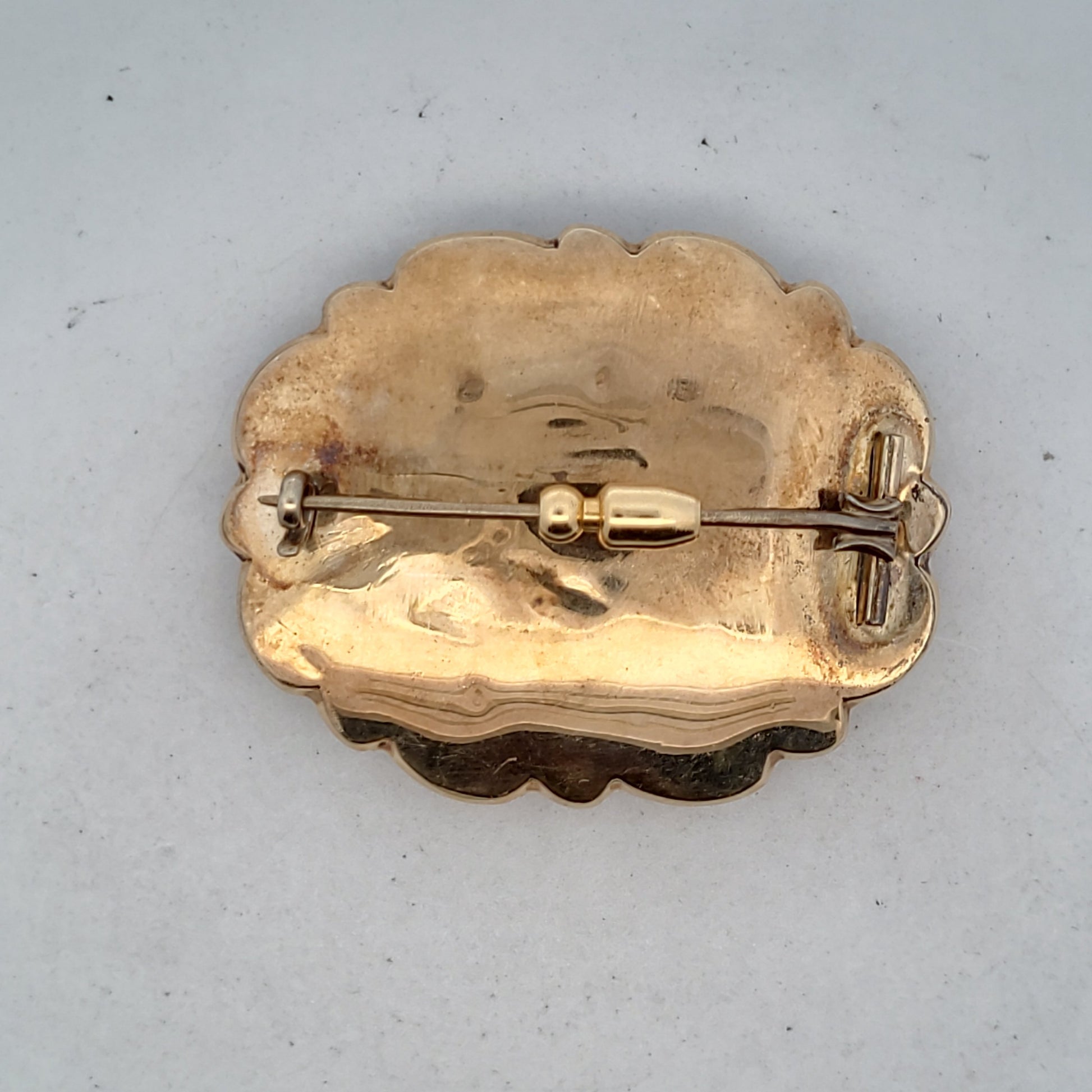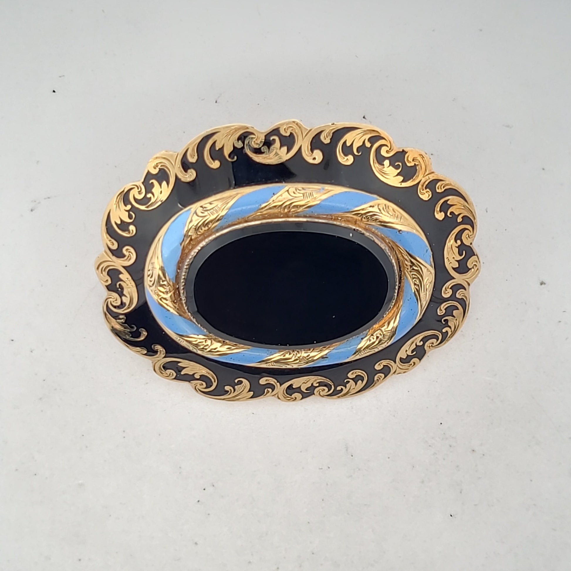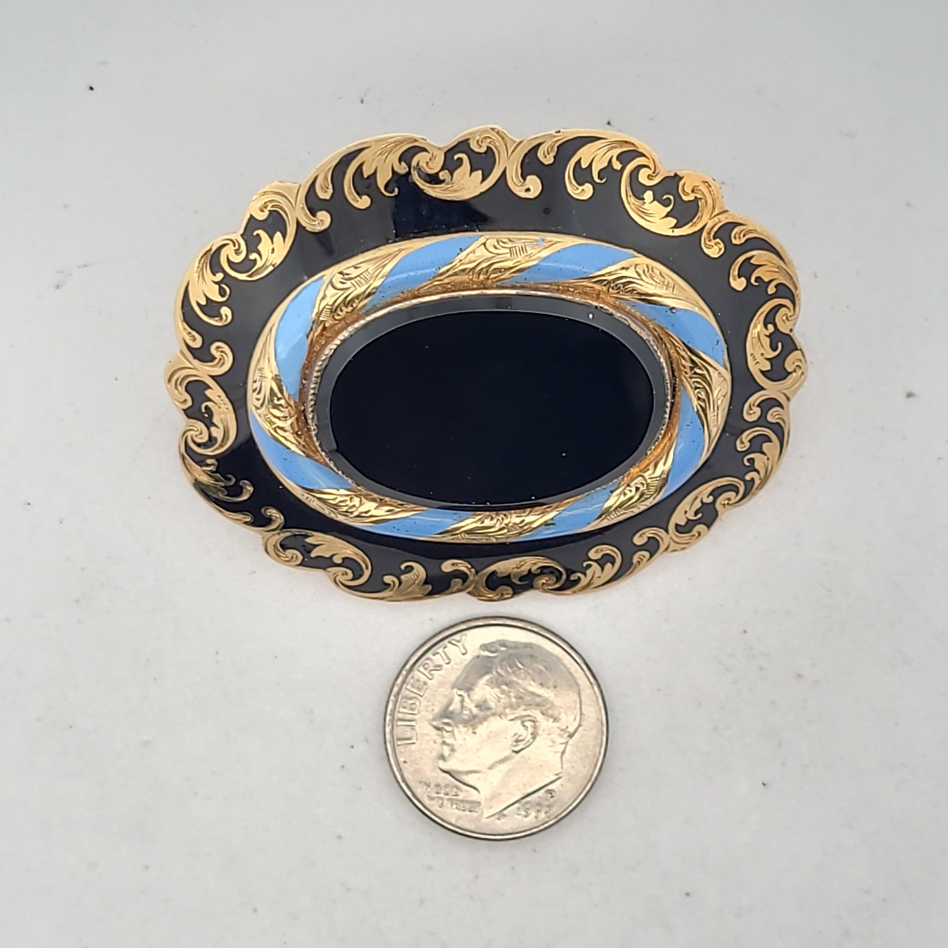 Victorian 9K Yellow Gold Onyx & Enamel Brooch