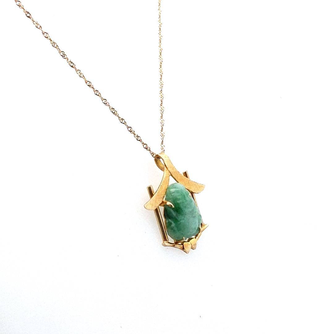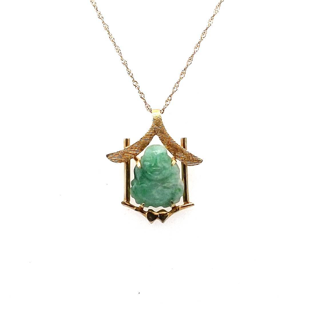 Vintage 14K Yellow Gold Jadeite Buddah Pendant Necklace