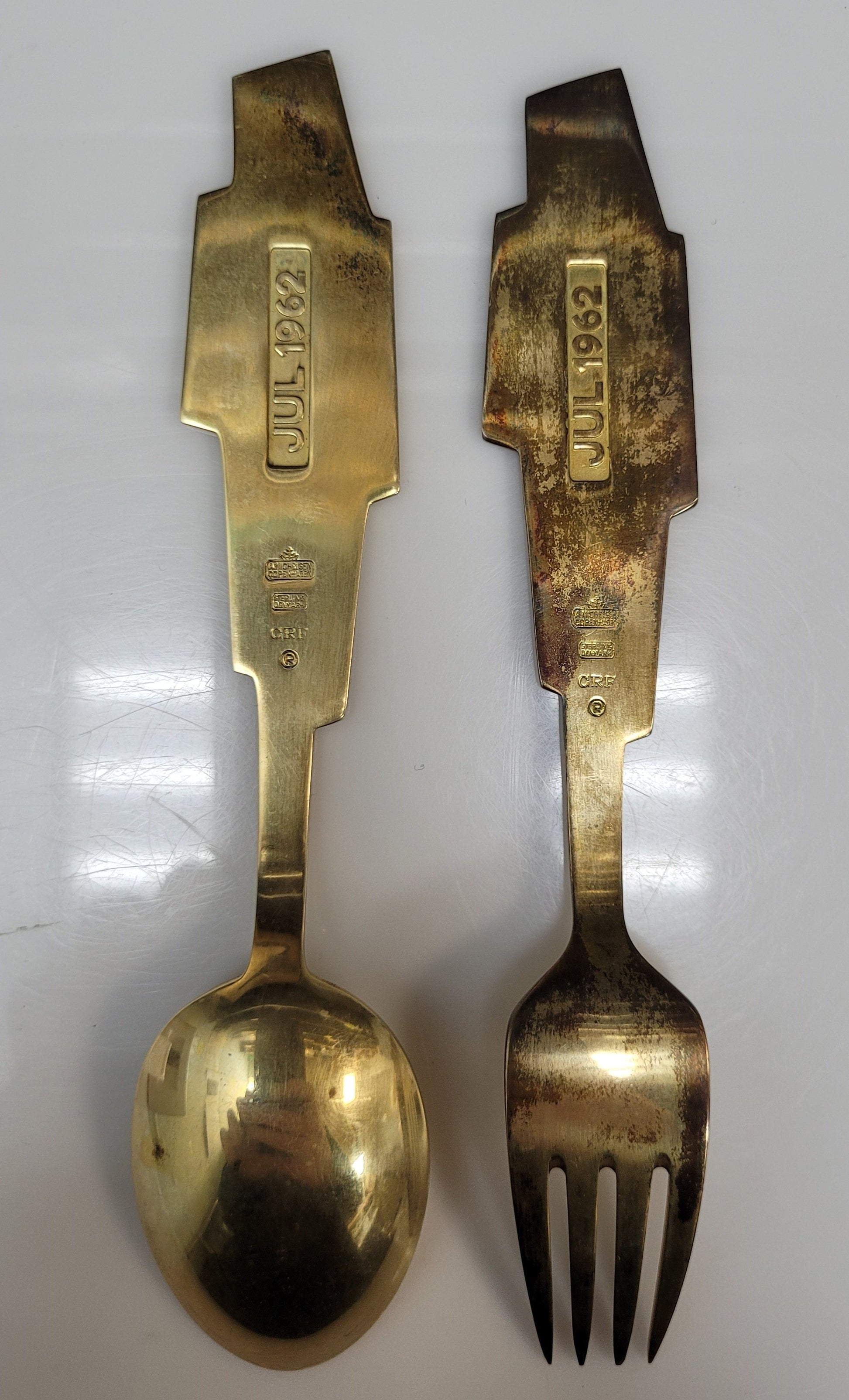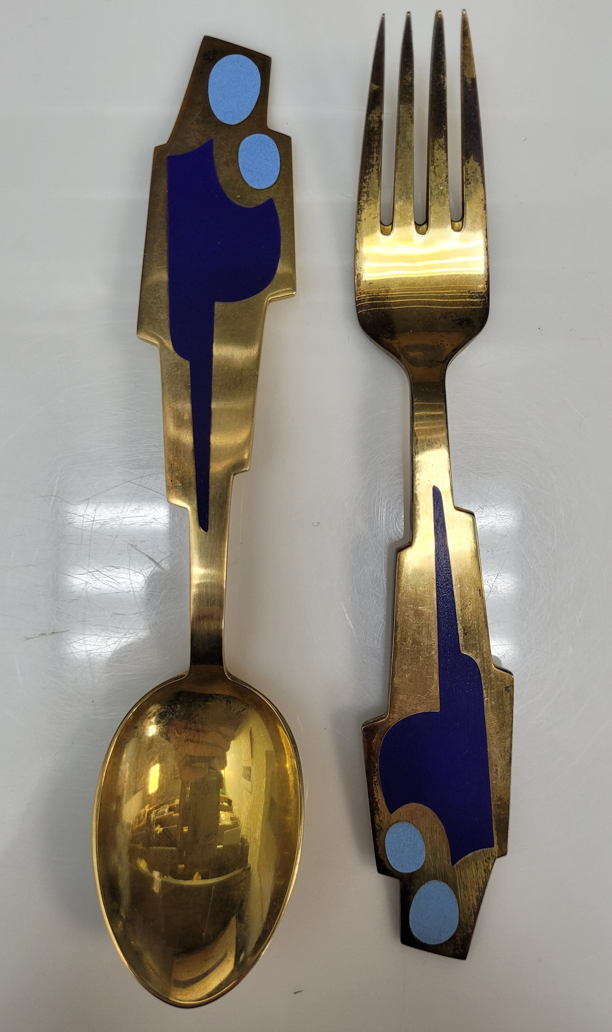 Vintage Sterling Silver A. Michelson Copenhagen Enamel Fork & Spoon Set