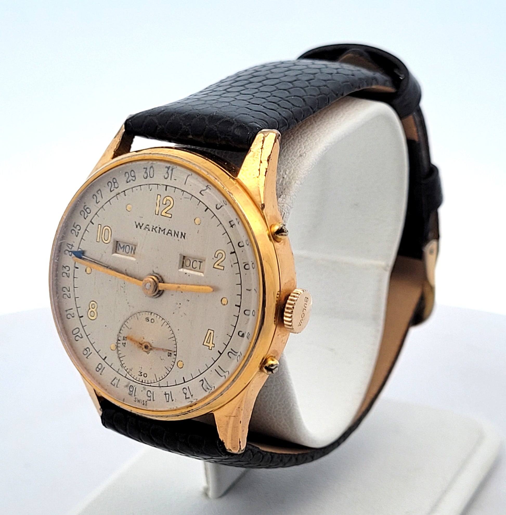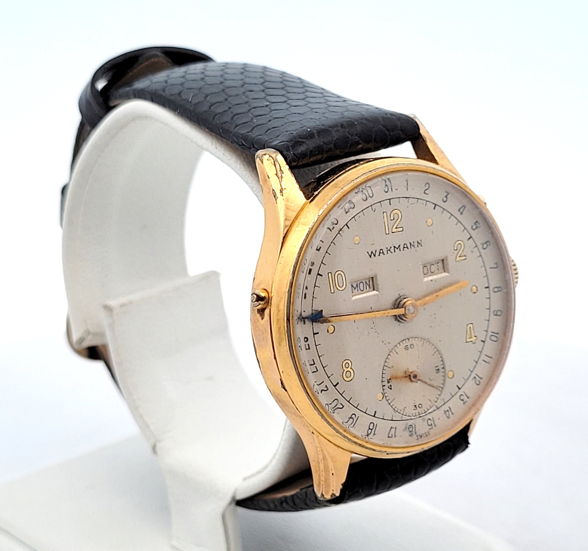 Wakmann Triple Calendar Gold Plated Stainless Steel Manual Wind Watch