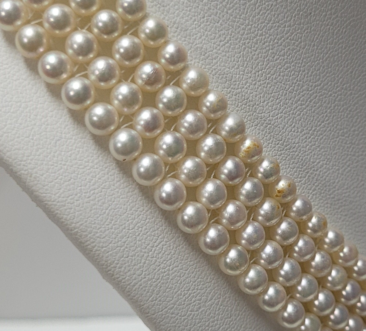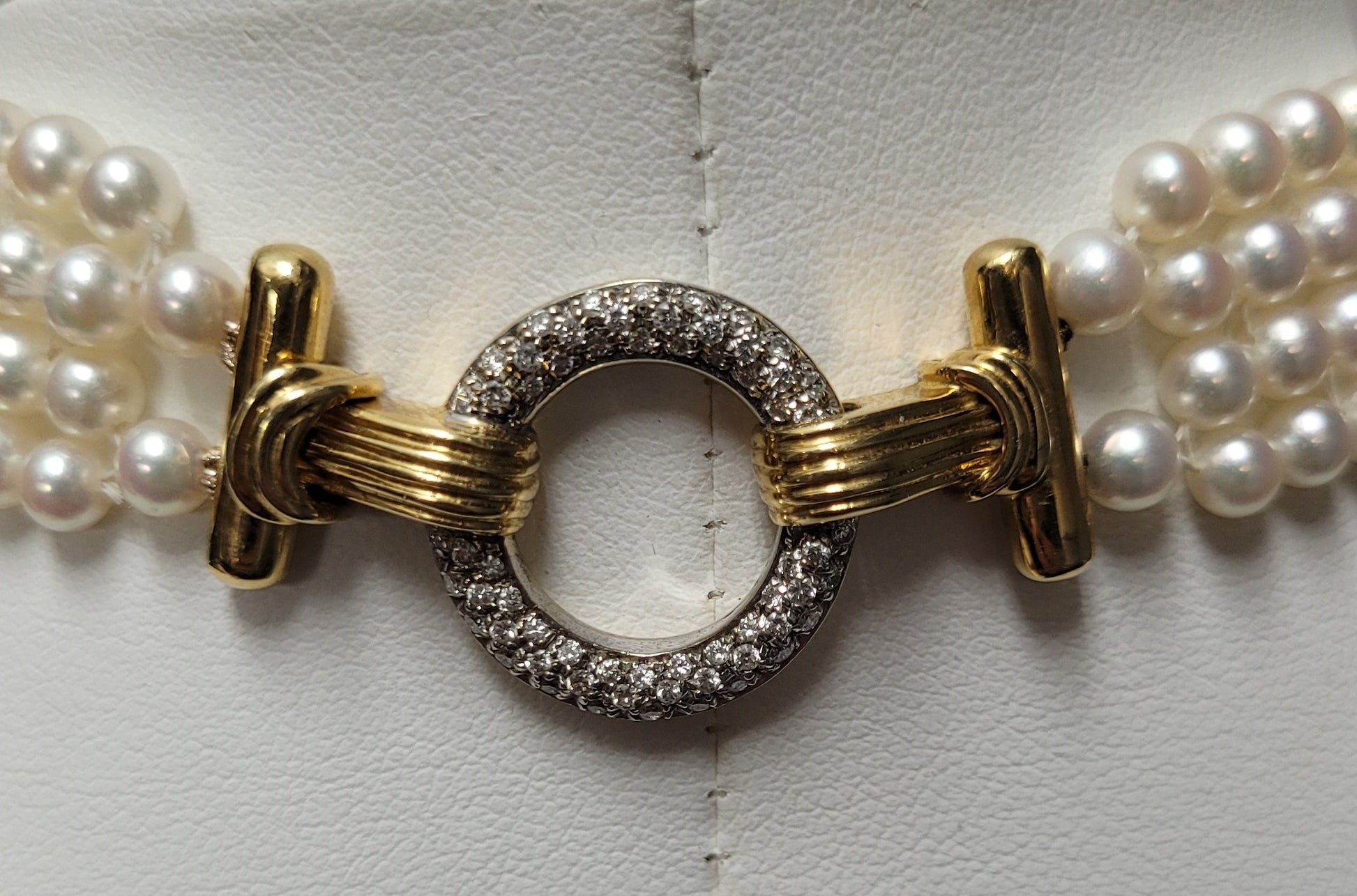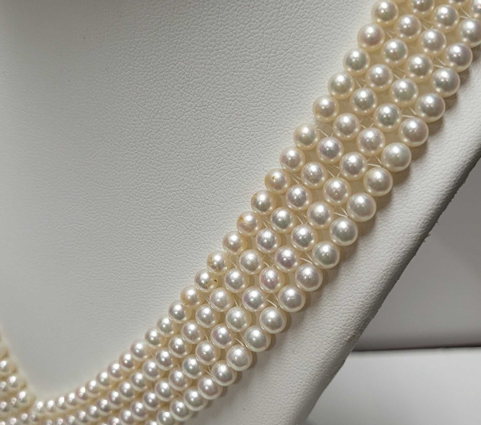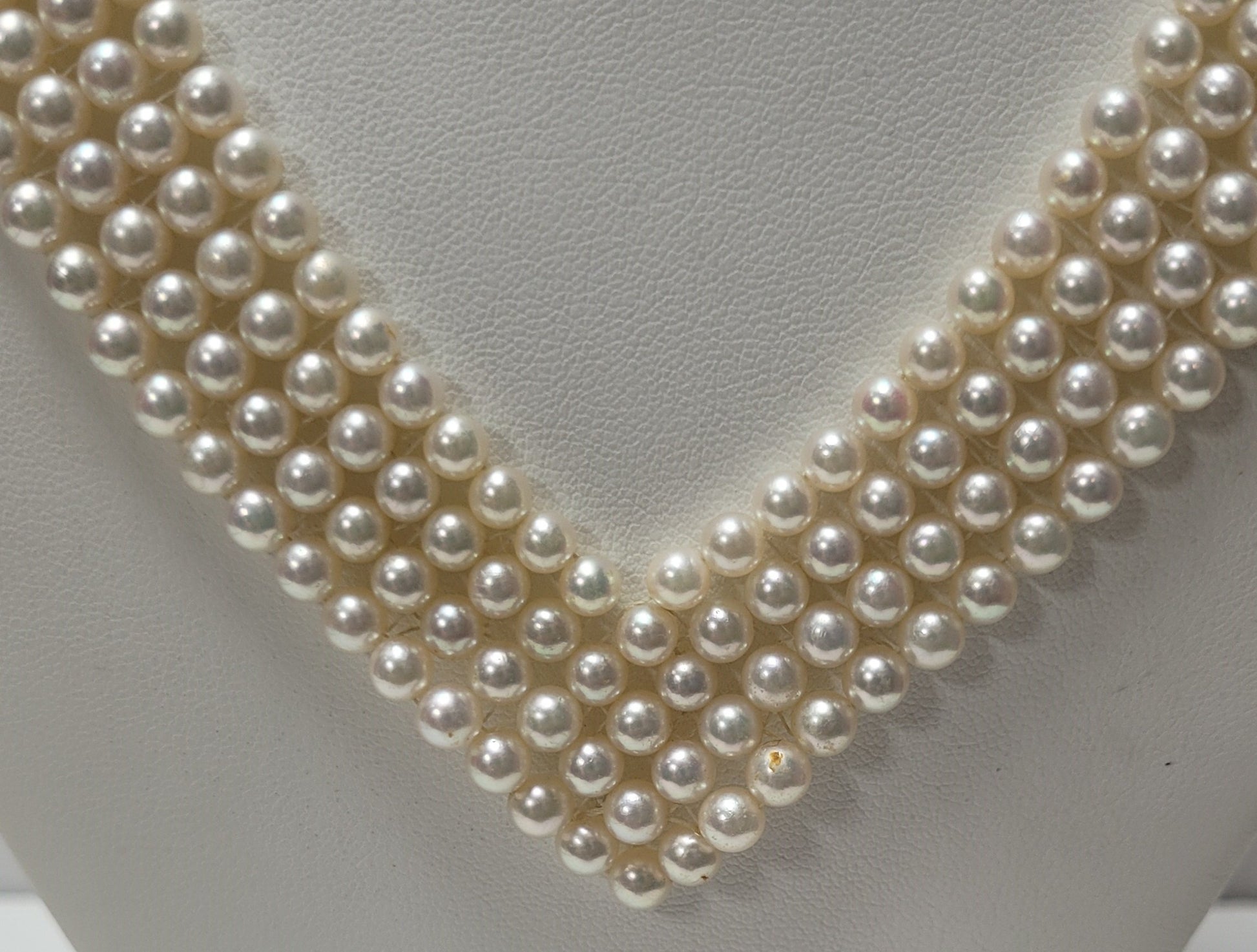 Wempe 18K Two Tone Gold 4-Row Pearl & Diamond V Necklace