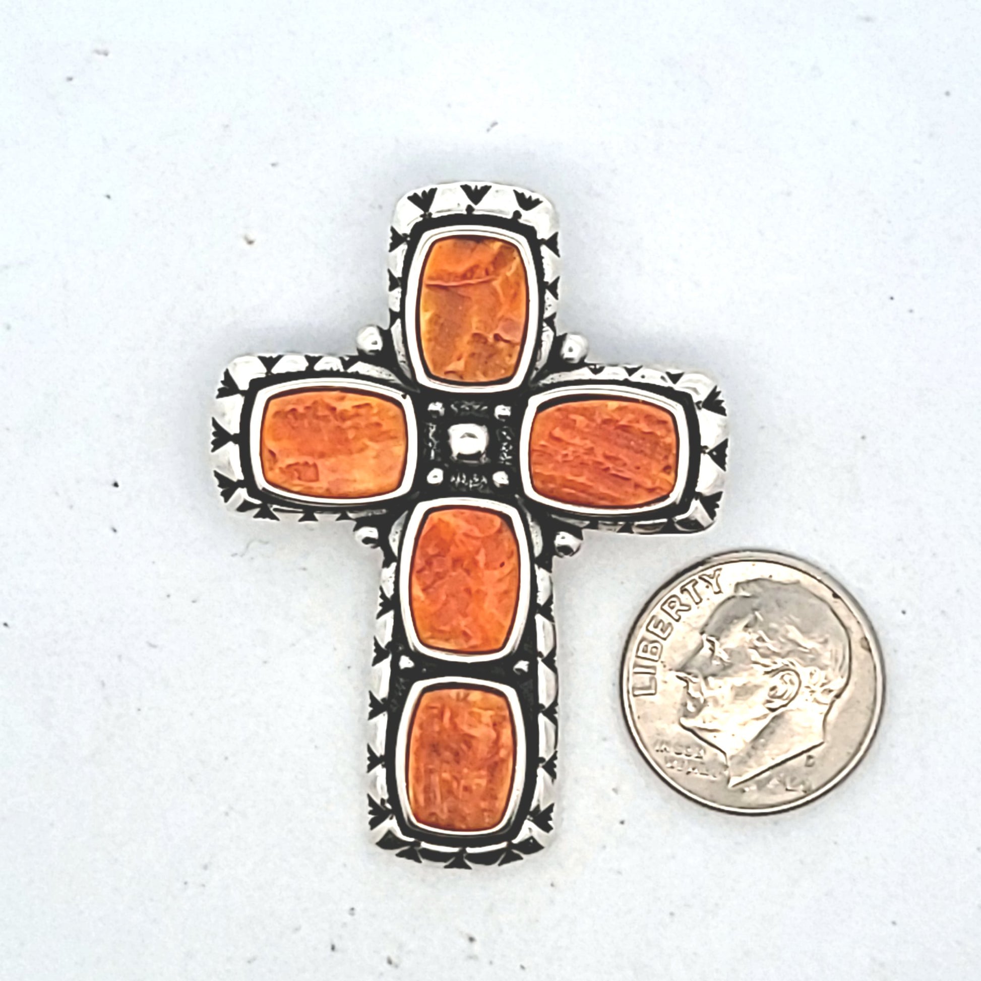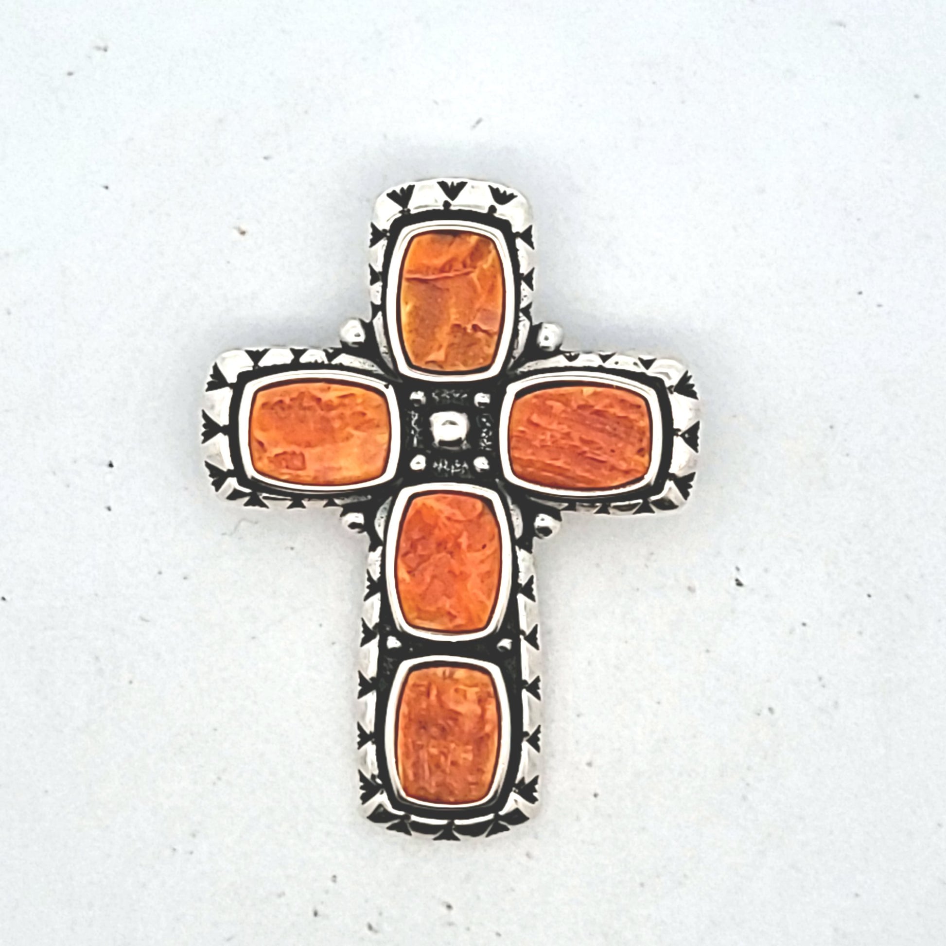 WJC Waldeck Johnson Sterling Silver SPiney Oyster Cross Brooch